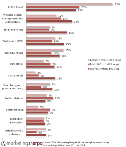 In a recent survey by Marketing Sherpa, large B2B companies invested about 33% (one-third) of their entire marketing budget on trade shows in 2011. Ironically, virtual events ranked on the other end of the spectrum, coming in at a mere 8%.