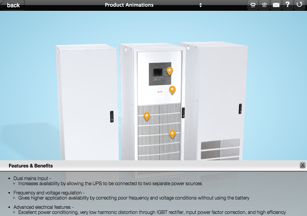 Consider using virtual 3D Product Models (that look and behave just like the actual products) on touch screens appliances at trade shows, or on mobile devices for remote sales meetings. Doing so will ensure products are available at every sales encounter and that customers can engage and navigate products as desired.